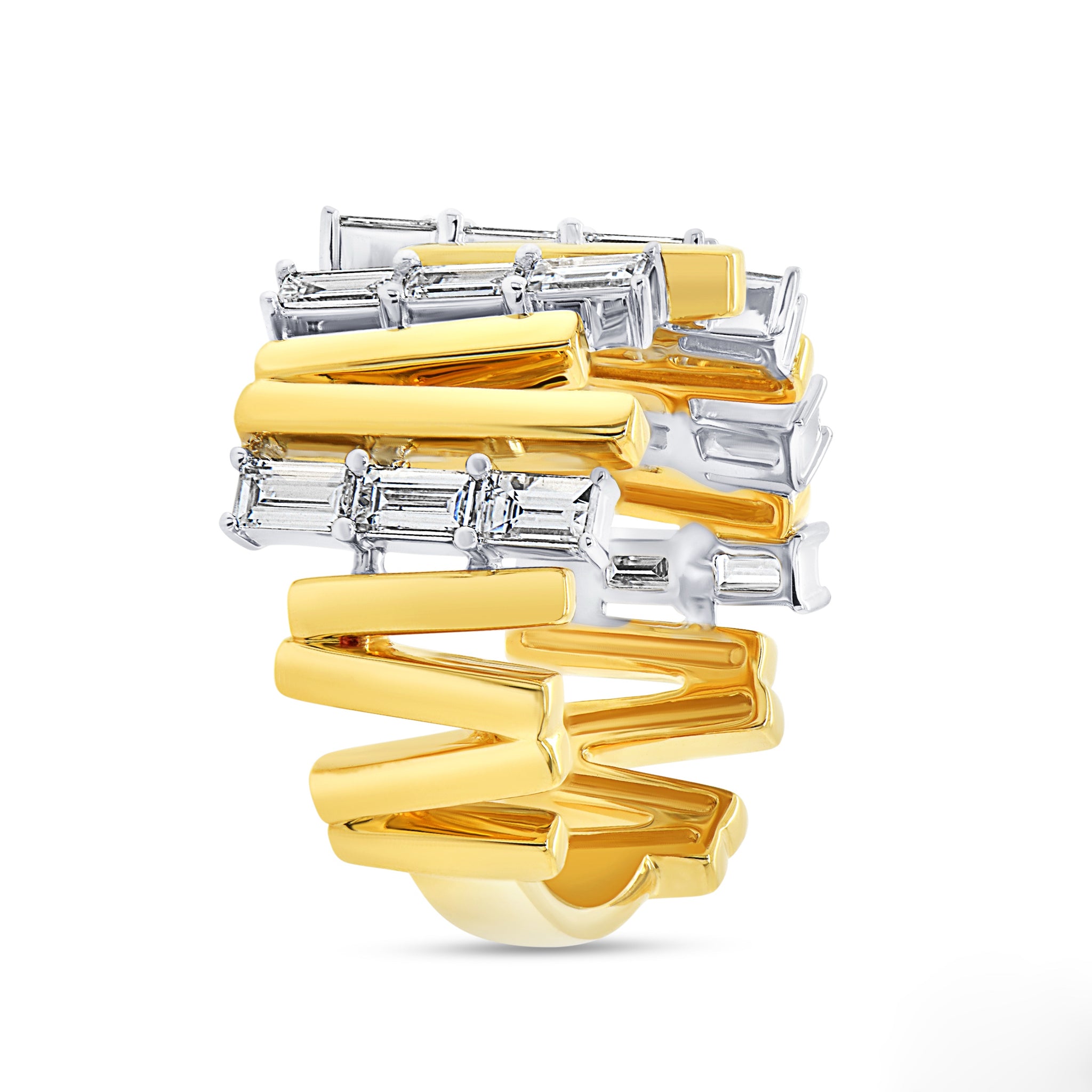 This striking 14K two-tone ring features 18 sparkling baguette diamonds totaling 1.48 carats total weight.