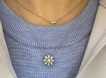 This wonderful pendant gives you a statement look at a great price! The milgrain details and single cut diamonds really give this pendant dimension! Stop in today to try it on!