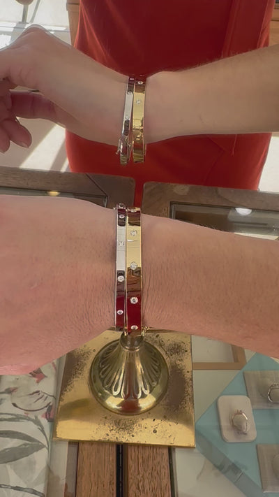 The most iconic diamond bangle bracelet in the jewelry industry is here. Solid and simple, this timeless piece is loved by everyone! The bezel set diamonds are carefree, no prongs to worry about and a smooth surface that is perfect for daily wear. The bracelet's oval shape provides maximum comfort for those on the go. Wear this everyday for your signature look or stack it with other bracelets...the options are endless!