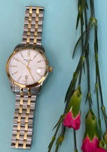 Elevate your style with this Two Tone Textured Dial Watch. Crafted with a luxurious two tone gold and silver stainless steel bracelet, this watch boasts a textured large dial gold hand and numeral accent. Stay on time in sophisticated fashion.