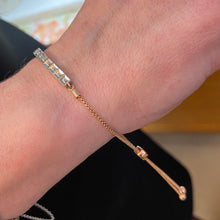 Indulge in elegance with our Vintage Two Toned Rose and White Gold Diamond Bolo Bracelet. Crafted from 14K rose and white gold, this stunning bracelet features a bolo style with 16 dazzling diamonds. Elevate your style and add a touch of luxury to any outfit with this timeless piece.